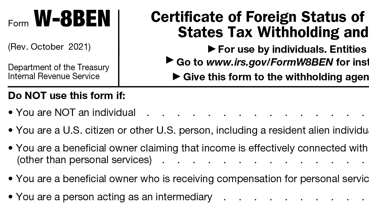 As part of our ongoing obligation to comply with the regulations set forth by the U.S. Internal Revenue Service (IRS), all non-U.S. clients receiving income from U.S. sources are required to maintain a valid and current Form W-8BEN on file. This document serves as an official declaration of your non-U.S. tax residency and ensures that the appropriate tax withholding rate is applied under relevant treaties.