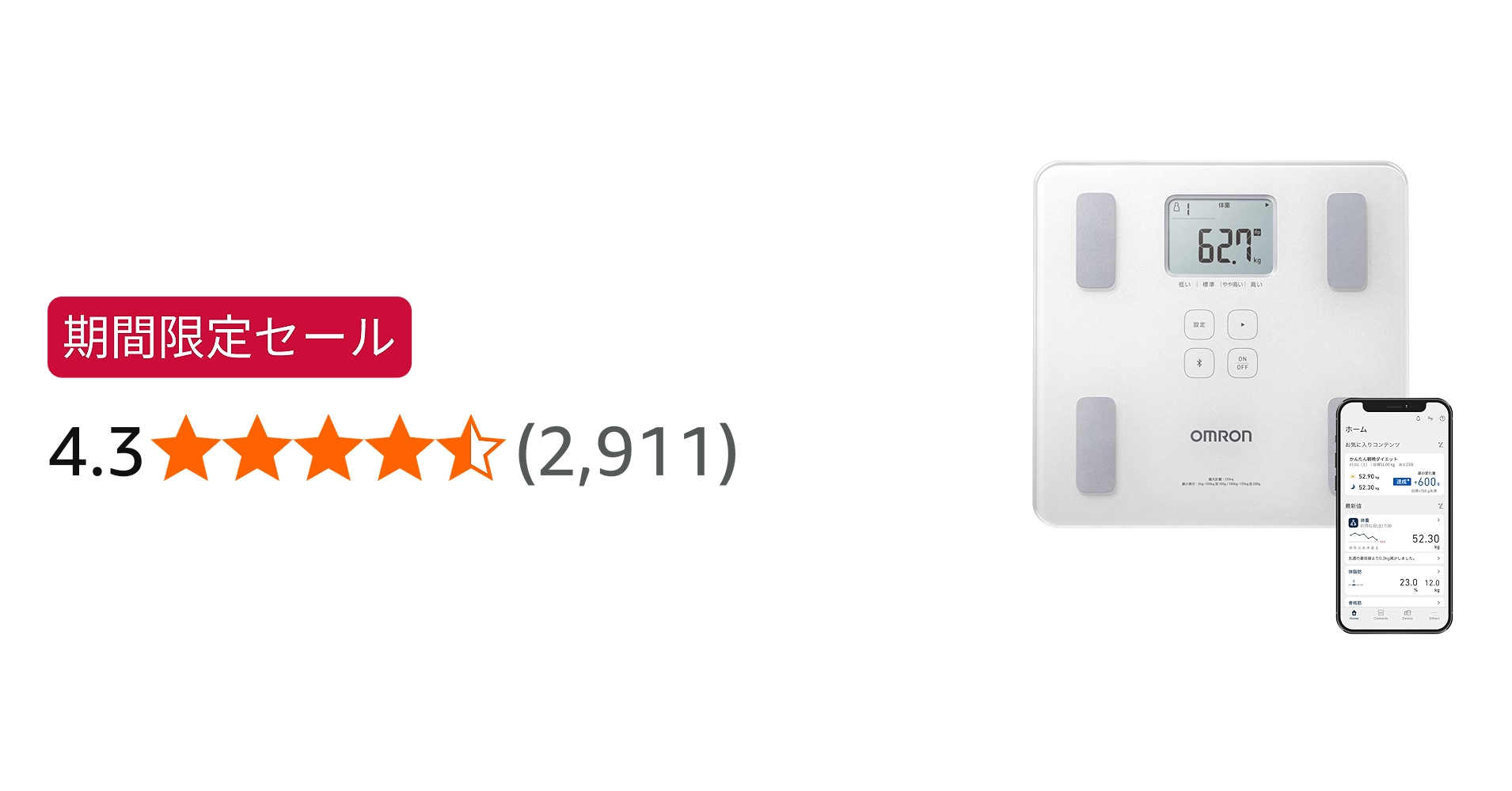 そこで見つけたのがこの”HN-300T2-JTW”でした”OMRON connect”対応で、今ならプライム感謝デーでお値段なんと¥2,980円!お試し及び体重だけで良い場合はこれで十分使えると思います!もう少し色々な事が知りたい場合は以下のものもおすすめですf^^