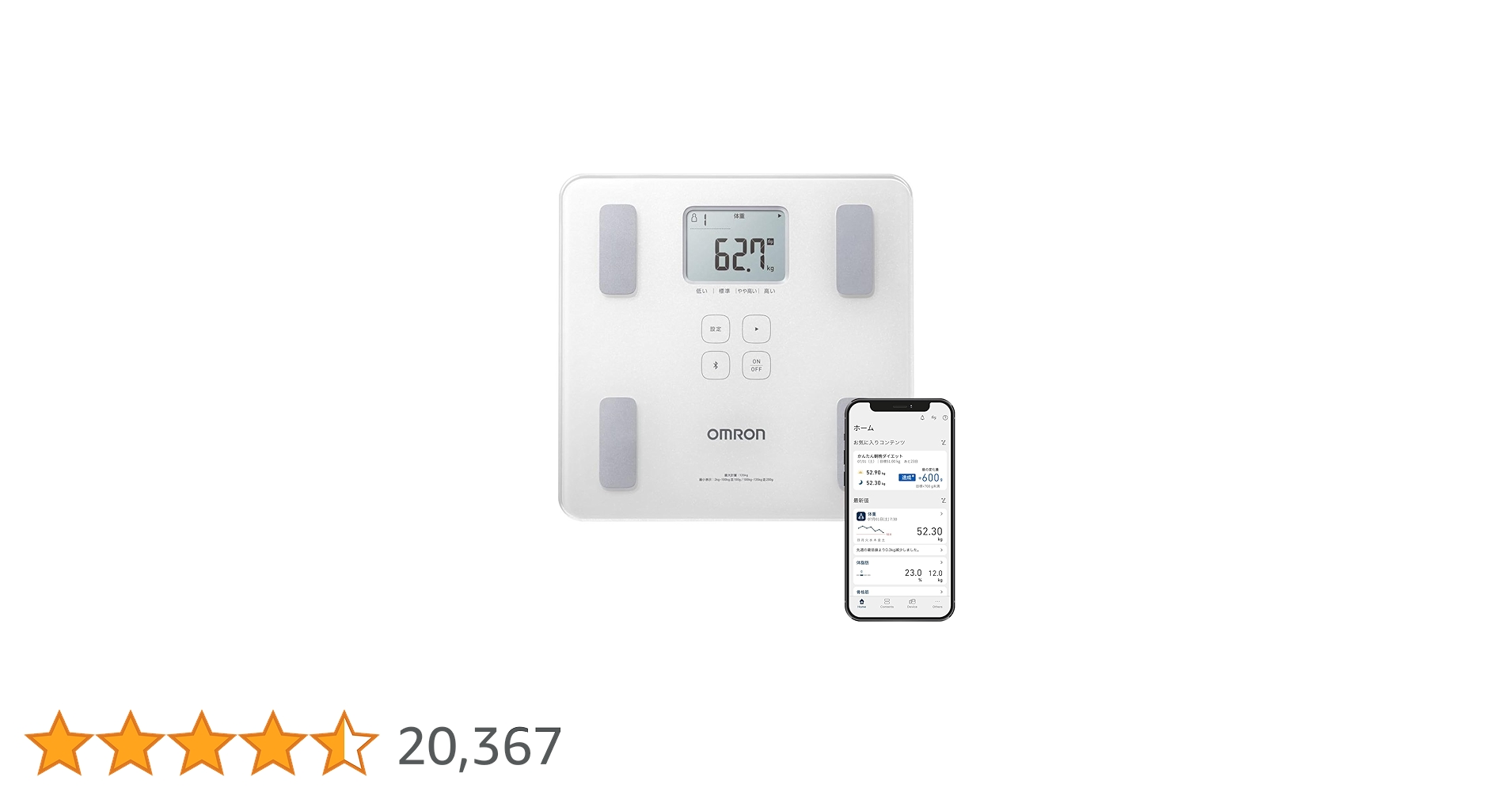 そこで見つけたのがこの”HN-300T2-JTW”でした”OMRON connect”対応で、今ならプライム感謝デーでお値段なんと¥2,980円!お試し及び体重だけで良い場合はこれで十分使えると思います!もう少し色々な事が知りたい場合は以下のものもおすすめですf^^